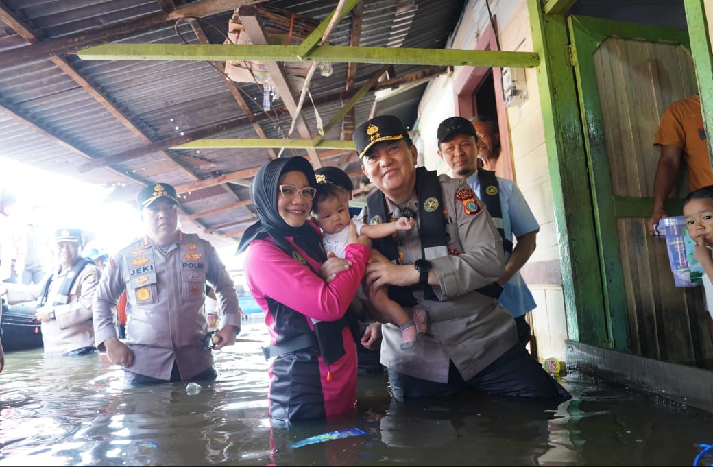 Setelah itu, Irjen Iqbal bersama rombongan memantau ketinggian air dan rumah warga yang terendam. Menggunakan perahu karet, Irjen Iqbal langsung mendatangi rumah-rumah korban banjir untuk menyalurkan bantuan.