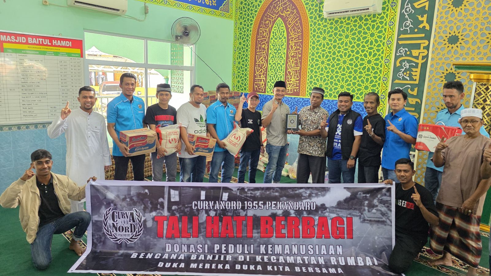 Puluhan pemuda Curva Nord 1955 turun langsung menyalurkan bantuan kepada masyarakat yang terdampak banjir di Rumbai. Mereka menyusuri kampung-kampung yang terendam air sejak enam hari terakhir.